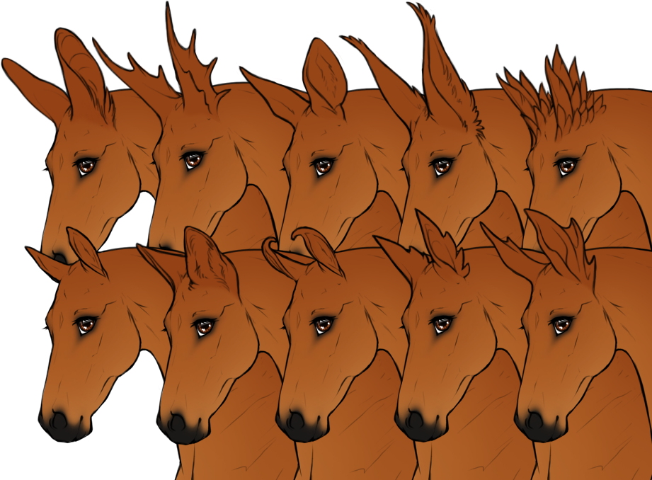 Natural horn/hoof colors and colors caused by Elemental alignments & Shimmer.